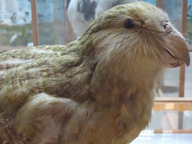 However the other feeling that has never left me is one of guilt. The animals are, after all, dead. And dead precisely because they are interesting or beautiful or educational to someone like me. I want to look and appreciate, but cannot fully enjoy being a voyeur. Zoos provoke a similar ambivalent reaction. It was with this background that I approached the stuffed Kakapo in the Oxford University Museum of Natural History. At first I was glad to see it and rushed over as if it were an old friend.